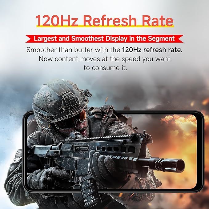 - Display: Large 17.47 cm 120Hz Refresh Rate display | 600nits peak brightness | 240Hz Touch sampling Rate | TUV triple certified eye care protection
